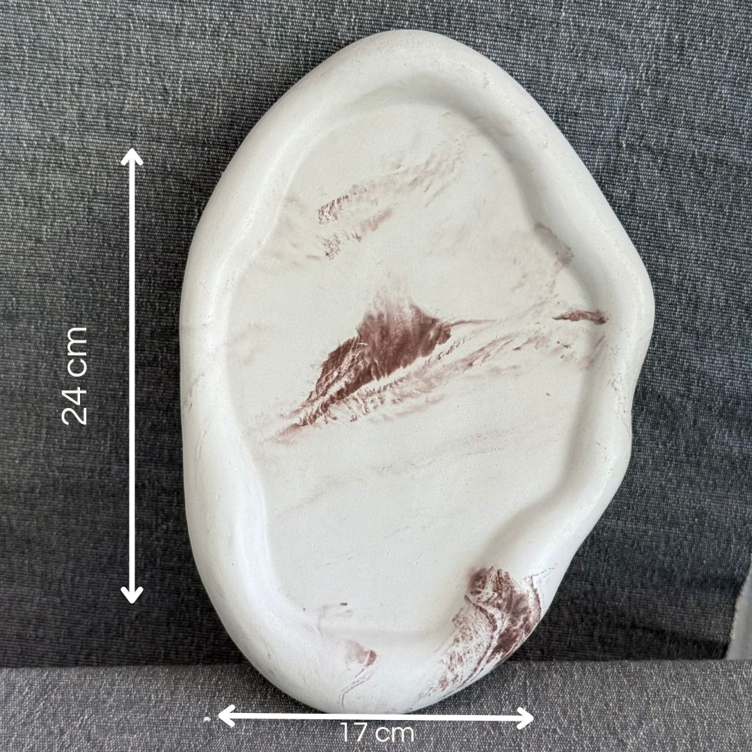 Inspirada en formas orgánicas, esta bandeja suave y fluida agrega un aire artístico a tu decoración. Ideal como pieza única o para destacar objetos especiales.